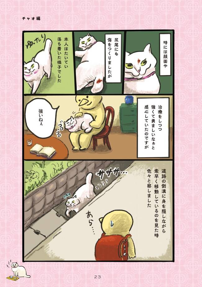 猫や動物をモチーフに、独特でユーモラスな「日常」を描いている画家のカマノレイコ(@ReikoKAMANO)さん。9月18日に発売になった新刊『白猫、黒猫、しましま猫』では、自身の絵に登場する人気キャラクターの元になった3匹の猫との日々を綴っています。少しずつどうぞ。