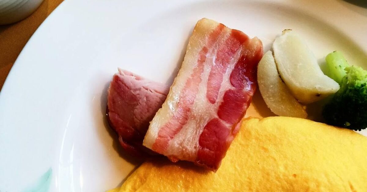 朝がきた。ホテル旅の大きな楽しみのひとつである朝食はメインダイニングで。赤、白、緑の板をランダムに貼り合わせた組天井、壁一面に配されたステンドグラスを見ながら、奥のサンルームへと向かう。こちらは菫色の椅子に山吹色のテーブルクロスという軽やかな雰囲気。テーブルにはよく磨かれたカトラリーとともに高原の花々が繊細なタッチで描かれたメニュー表が。目の前に広がる中庭の緑は朝日に照らされ瑞々しく光っている。BGMは鳥のさえずり。そこに健やかな風が……。いや、窓はしまっているから無風なのだけど、たしかに風を感じるサンルーム。ほどなくして、アメリカンブレイクファーストが運ばれてくる。スズランの絵がついた皿のうえでは見目麗しいオムレツが。ナイフを入れるとこの黄金色の衣がいかに薄く繊細なのかがわかる。温野菜、ジューシーで肉厚なハム、信州野菜のサラダ、季節のジュース、フルーツ&ヨーグルト、三種のブレッドとオリジナルジャムにコーヒーがついていて、このうえなく満たされる。