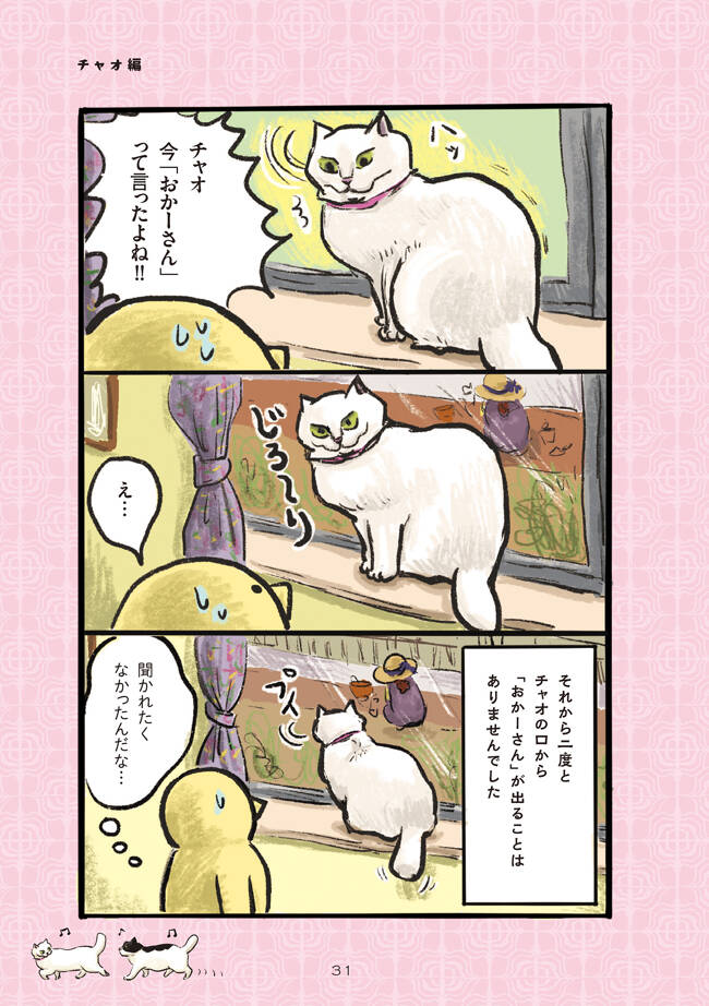猫や動物をモチーフに、独特でユーモラスな「日常」を描いている画家のカマノレイコ(@ReikoKAMANO)さん。9月18日に発売になった新刊『白猫、黒猫、しましま猫』では、自身の絵に登場する人気キャラクターの元になった3匹の猫との日々を綴っています。少しずつどうぞ。
