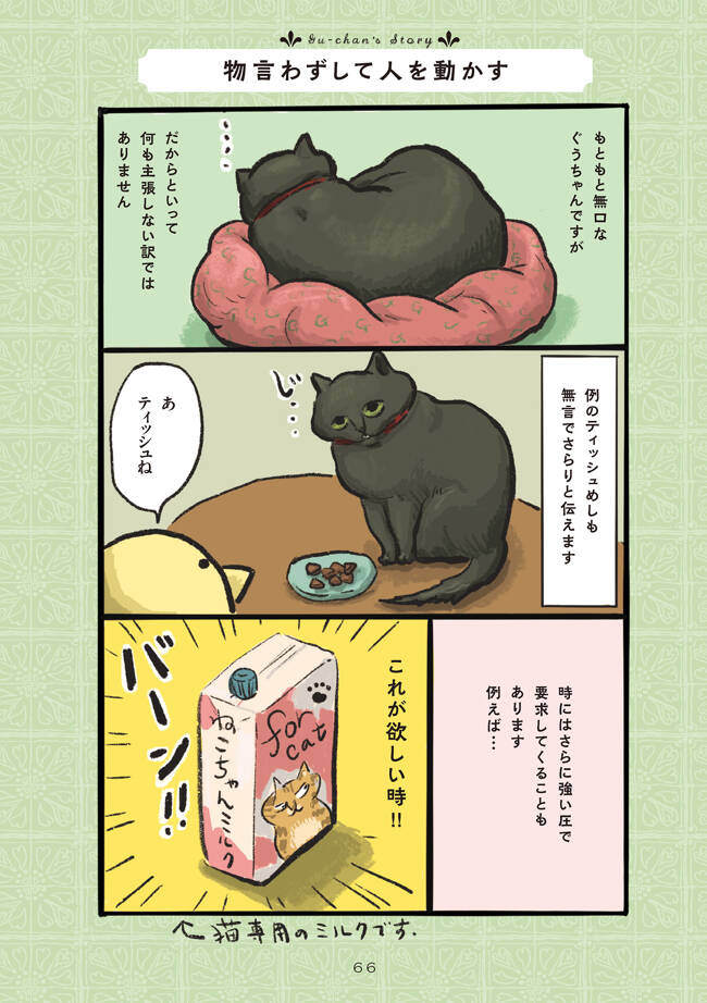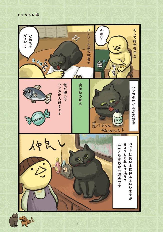 猫や動物をモチーフに、独特でユーモラスな「日常」を描いている画家のカマノレイコ(@ReikoKAMANO)さん。新刊『白猫、黒猫、しましま猫』では、自身の絵に登場する人気キャラクターの元になった3匹の猫との日々を綴っています。少しずつどうぞ。