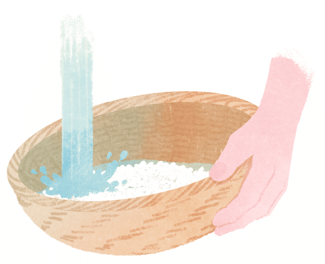 私がおつとめしている神社でお米をお供えするときは、いったん洗って竹ざるにあげます。これを「洗い米」と呼びます。