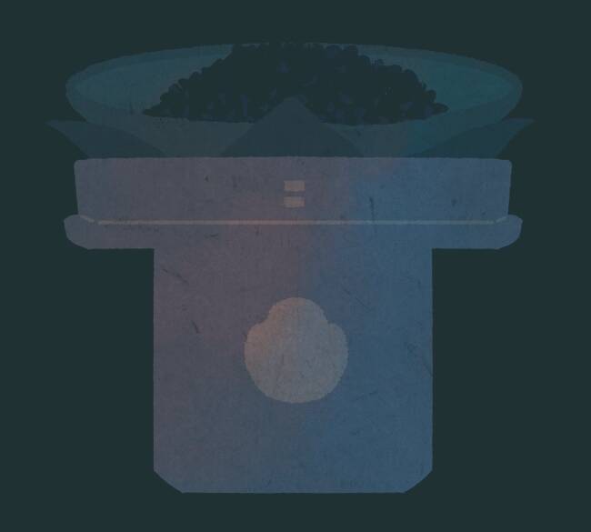 洗い米を山形に盛ったそのお皿を、「三方(さんぼう)」という木製の台にのせて、ご神前にお供えします。三方は、正方形の折敷に脚がついた台のことで、脚の部分の3面に穴があいているので三方と呼ばれています。