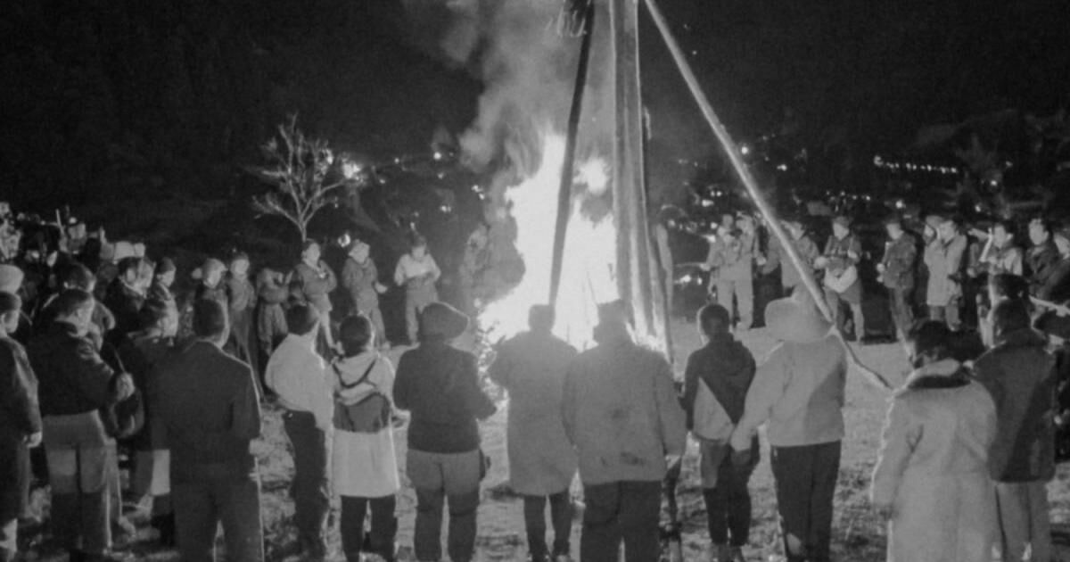 - 10数人の村人? 街灯なし、火を囲んでいる なんらかのギシキ?