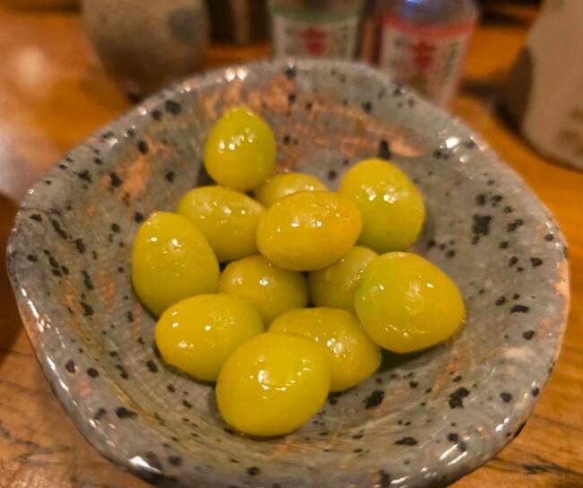 【本日の乾杯】酒煎りした銀杏。毎年この時期にいただく。お酒で炒っているからかちょっと甘くてネットリしていて、それでいて銀杏の味がガツンときて。大好きな食べ方。純米をロックでグビリざますよ。