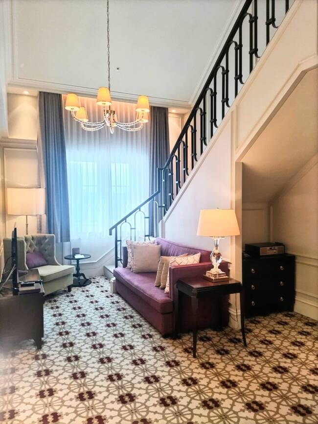 ……あれから1年あまり。東京ステーションホテルという白地図をひとつまたひとつ塗りつぶすように、いくつかの客室に泊まってみた。カーテンを開けるとドームレリーフが間近にあったり、駅舎の赤煉瓦がデスクスペースのインテリアとして使われていたり、いずれも唯一無二の世界。中でも印象に残っているのが、メゾネットタイプの客室だ。ドアをあけると斜めの天井に沿ったヨーロピアンクラシカルな階段! はてしなく高い天窓がいとをかし。1階はリビング、2階がベッドルーム。何度も階段を上り下りしては段数を数えてみたり、天窓についたシェードをリモコンで開閉してはニヤニヤしてみたり。子供の頃に読んだ「赤毛のアン」や「小公女」のページをめくっているような屋根裏体験が愉しめる。