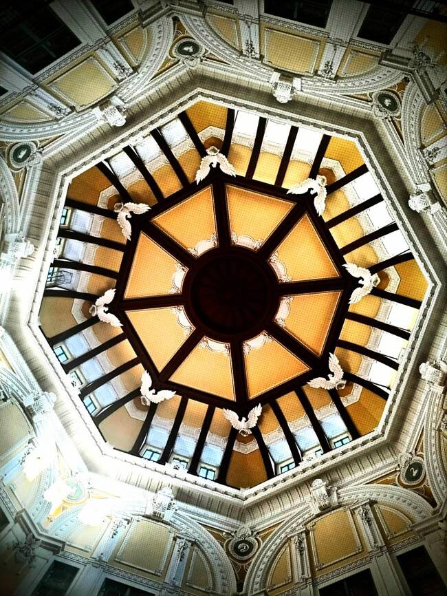 ひとつひとつ異なる表情を見せる客室をレールのようにつないでいるのが全長335メートルの廊下だ。まっすぐに伸びたその直線美だけでも歩くに値するが、東京駅や鉄道、東京ステーションホテルにまつわる写真や絵画など多くのアートワークが飾られていて、さながら美術館の趣き。廊下の両端――丸の内北口と南口の真上にあたるアーカイブバルコニーではドームレリーフを目の高さで眺められ、装飾のディテールがよくわかる。ドーム中央にはクレマチスの花飾りが施されている。花言葉は「旅人の喜び」ですって。この意匠はホテル内にも散りばめられていて、照明や床、扉付近を探しながら歩くのもまた愉し。