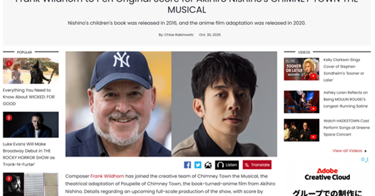 作曲家フランク・ワイルドホーンが、西野亮廣原作のアニメ映画『えんとつ町のプペル』の舞台版『えんとつ町 ザ・ミュージカル』のクリエイティブチームに加わりました。ワイルドホーンによる音楽を担当するこのショーの本格的なプロダクションの詳細は、近日中に発表されます。