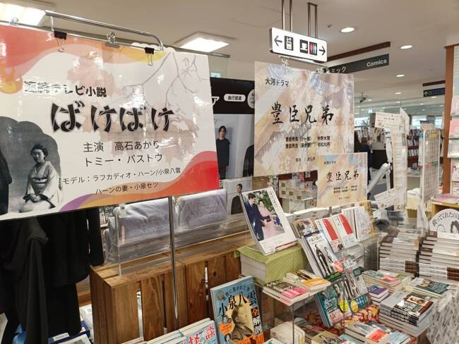 定番の、朝ドラ・大河ドラマ関連本コーナーもしっかり展開。