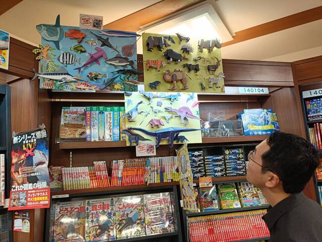 学習参考書の棚には、小学館の『図鑑NEO』シリーズの立体折り紙が。一つずつ、綺麗に作られたものが展示されていた。