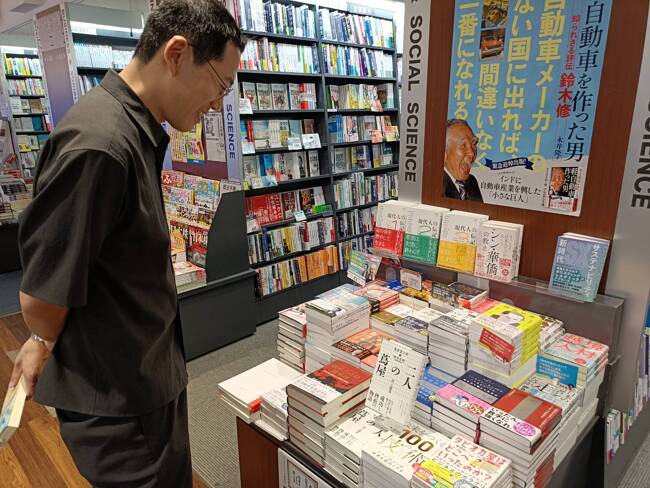 棚には、『軽自動車を作った男 知られざる評伝 鈴木修』の大きなポスターが掲示されていた。鈴木修といえば、スズキ株式会社の元社長兼会長であり、同社を世界的な自動車メーカーに育て上げた経営者である。(スズキの本社は浜松市)
