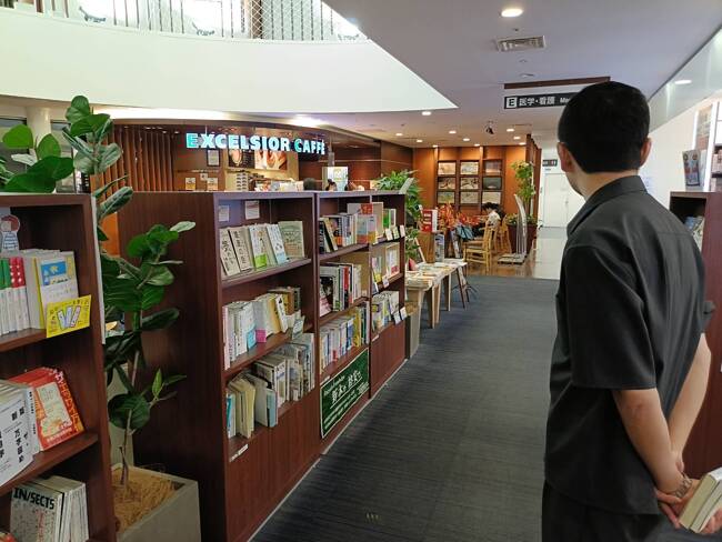 エクセルシオールカフェが併設されているため、買った本をすぐに読むことも可能。