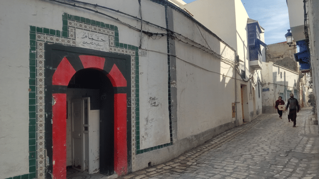 真面目そうに会話しているスーツ姿の人々が増えると裁判所はすぐそこだとわかるように、布の入ったかごを持つ女性たちが増えるとハマムはすぐそこだとわかる。アルジェリアもそうだったが、チュニジアでもハマムは男女分かれていたり、女性用の日と男性用の日で分かれていたりする。その日は女性用のハマムに入った。