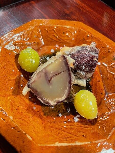 久しぶりに京都の夜をゆっくり過ごしました。栗とぎんなんの付け出し。秋の味覚を堪能。
