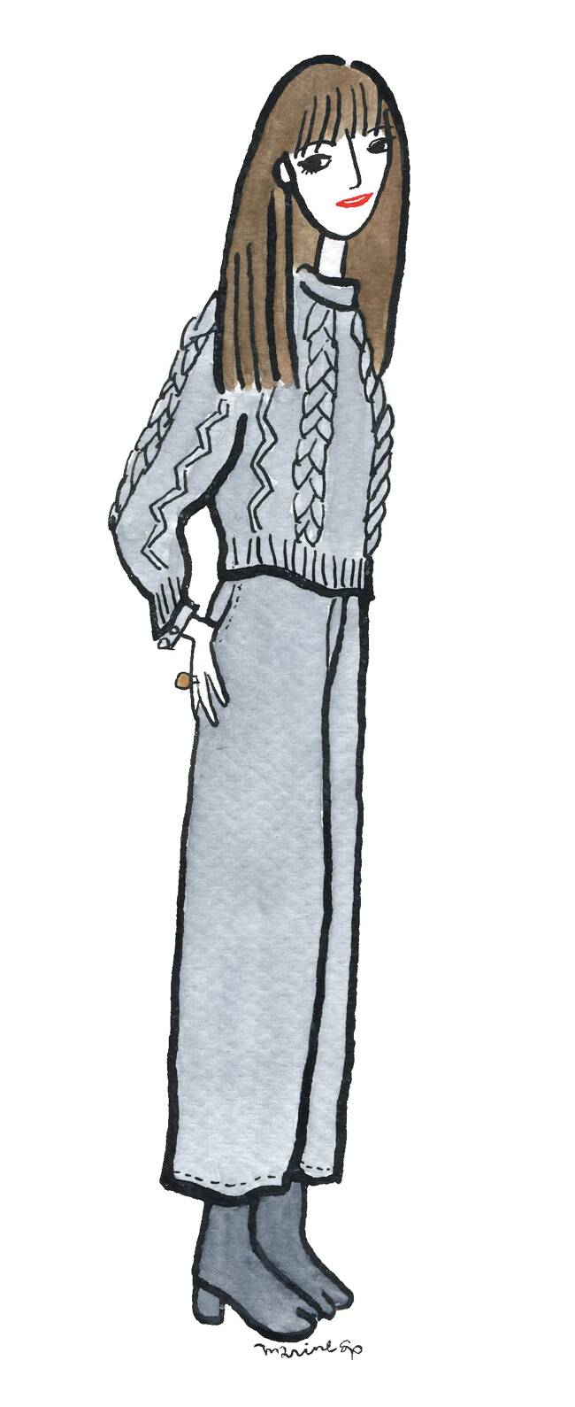 特にお気に入りのLAFETICHE のケーブルニットは、襟ぐりにコードが付いているのが