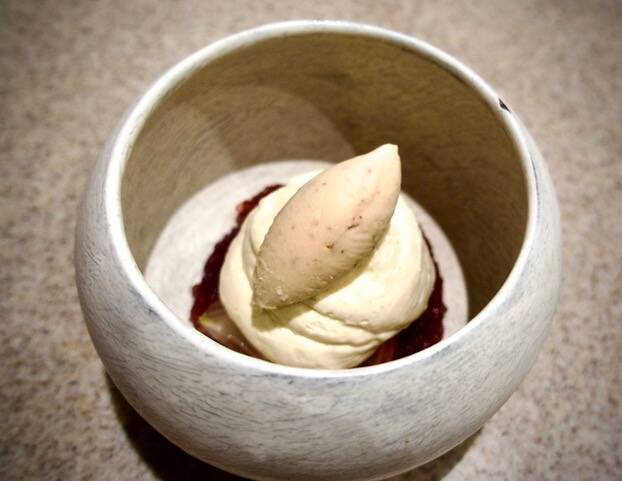 先ほど国技館のネタに触れた際、角界通の編集者のことを記したが、このお店を訪れたときは、シェフの先輩料理人が私の隣に偶然座った。そしてシェフの一挙手一投足をつぶさに、そしてプロの目線で解説してくださった。
