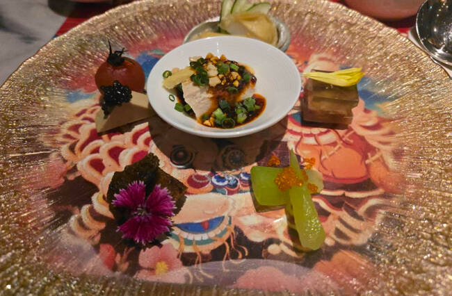【本日の乾杯】コロナ禍以降、すっかり定番化しつつある大久保さんとの旅行代わりの豪華新年会。今年は小峠せんせーの結婚祝いのお返しのカタログから中華ペアディナー券をセレクト。前菜から華やかでよき年の始まり。