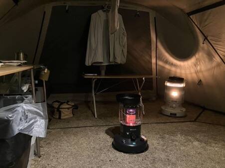 テントは冬用のシェルターというタイプで、大きなテントの中にリビングルームとベットルームがあるスタイル。なので、全ての扉を閉じきり、ストーブで室内を温めれば冬でもキャンプを楽しめるわけです。