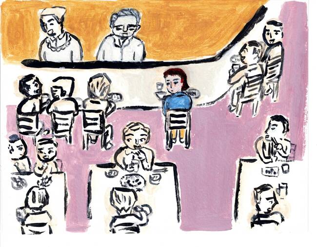 無職のサチコは買ったばかりのシャツブラウスに、自分ではいちばん痩せて見えると思ってはいるパンツを穿いて、ひとり暮らしのマンションを出た。目的は徒歩三分のところにある、住宅地のなかの古い食堂だ。サチコが二十年前にこの場所に引っ越して来たときからあり、知っている限りでは、外装の補修工事をしているのを見た記憶はない。店名は「キング」と立派だが、古びたモルタル造りの二階建て店舗兼住宅の壁にはひびが入っている。看板もどこか煤(すす)けている。しかし、ガラス戸や窓から店内をのぞくと、必ず複数の客が入っている店だった。