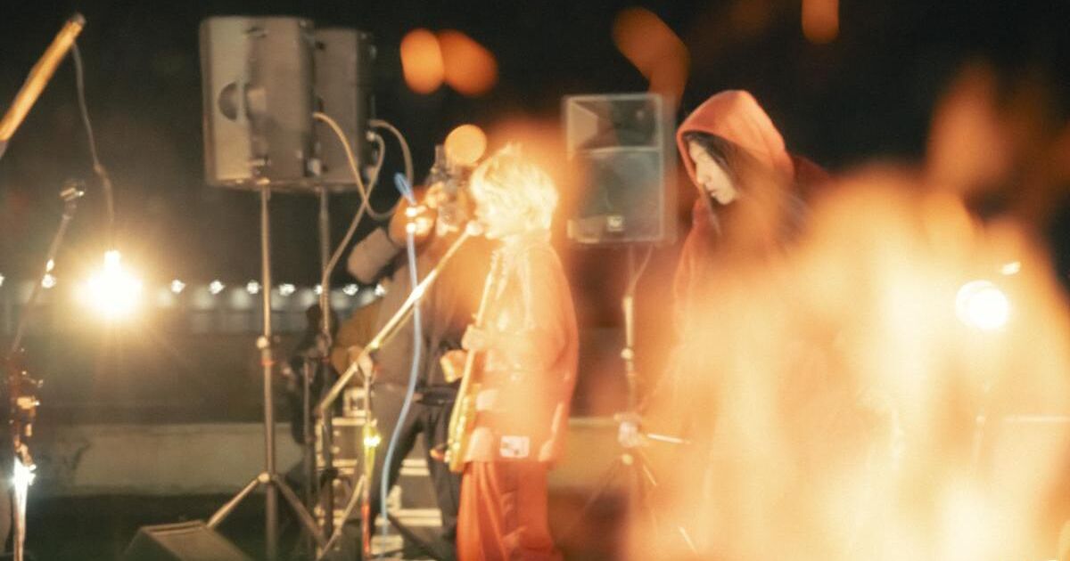 川崎の会場にたどり着く。階段を登ると⽕が焚かれイカれた M ステのようなセットが広がっている。