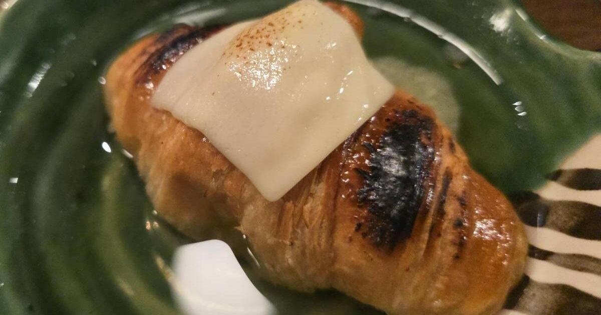 【本日の乾杯】昨年ロケで伺った小伝馬町の「中ノ森」へ。感動した“クロワッサン”のおでん、再び。オニオングラタンスープみたい。日本酒、すすんじゃう。