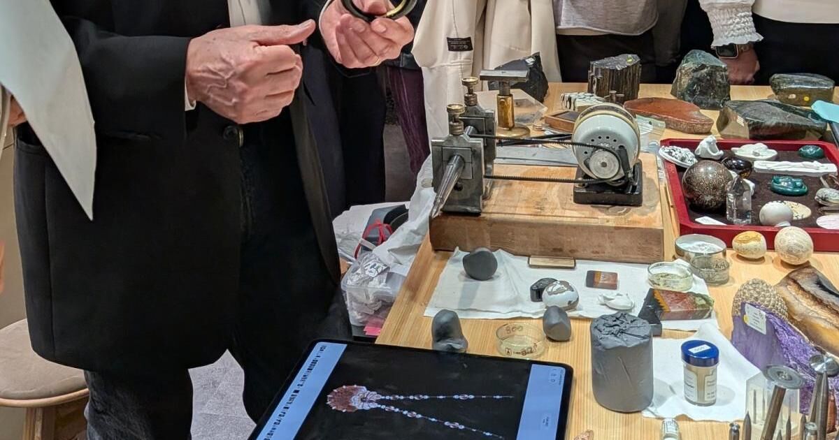 さらに2階では、時間制でグリブティック (宝石彫刻)職人としてカルティエで作品制作に携わったメートルダール(フランスの人間国宝的な存在)の制作風景とトークを拝見できました。大きな原石がたくさん並んでいて天然石好きとしてはパワーを吸収したくなります。原石から受けるインスピレーションをもとにプランを考えて、社長のOKが出たら実際に作るそうです。例えばジャスパーのパンテールのブレスレット、ラブラドライトの置き時計など。年間10点くらい作っていたそうで、時間的にも余裕があります。友人のお知り合いが、カルティエの職人さんによる石の置き時計を1億円くらいで買ったことがあるそうです。さすが一点ものだけあります。子孫に受け継いだら贈与税がかかってきます。ちなみに私の実家はいっさい相続でも贈与でも税金がかからない範疇で、庶民は気が楽です。