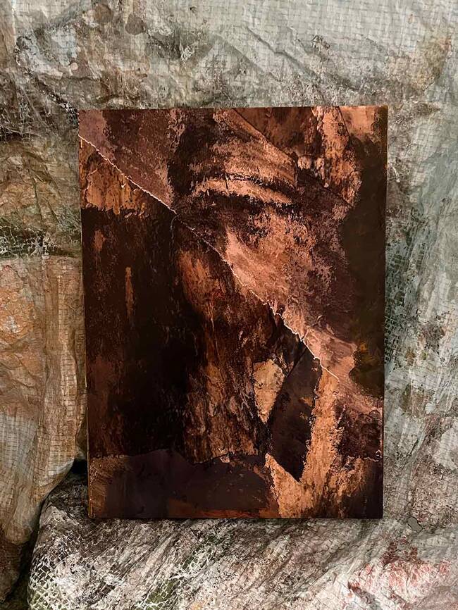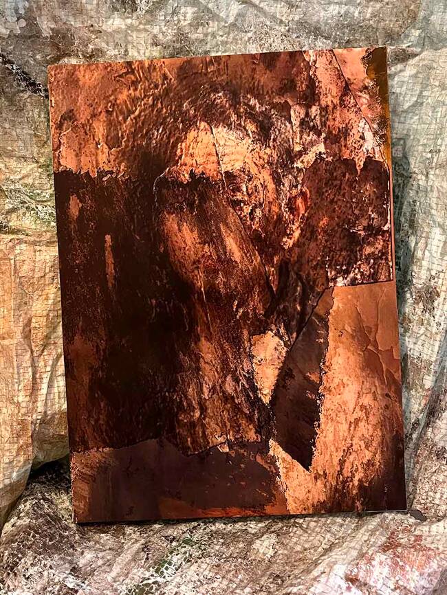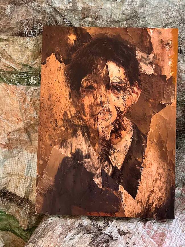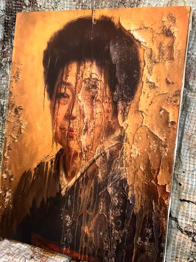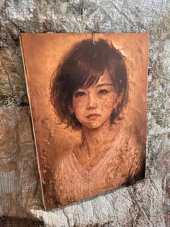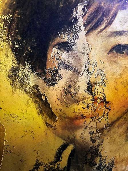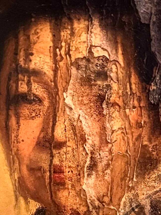 剥がし作業をしていたのですが、元の肖像画の下に別の顔があるのに気づきました。