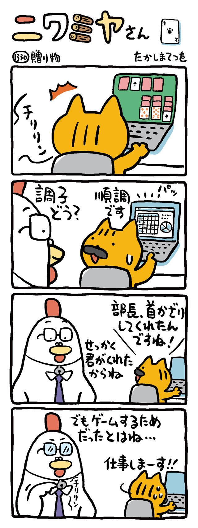 嫌な記憶ってたびたび頭に浮かんできて、心をもやもやと曇らせますよね。ひとは危険や不快な出来事を、将来それを避けるために優先して記憶に残してしまうそうです。そういう防衛本能なら仕方がない。ならば、嫌な気分になったときの対処法を持っておきたいところです。そういえば、ぼくにはひとつありました。親しいひとからもらった贈り物を、目に入る場所に置いておくことです。贈り物には、自分に向けられた善意の光が宿っている気がします。それを見つめていると、太陽の光が雲を蹴散らすように心のもやもやがすっと消えていきます。机の横のスチール棚に磁石でくっついてる、かわいい友だちがくれた猫のペーパーカッターにも、何度も助けられているなぁ<´ `