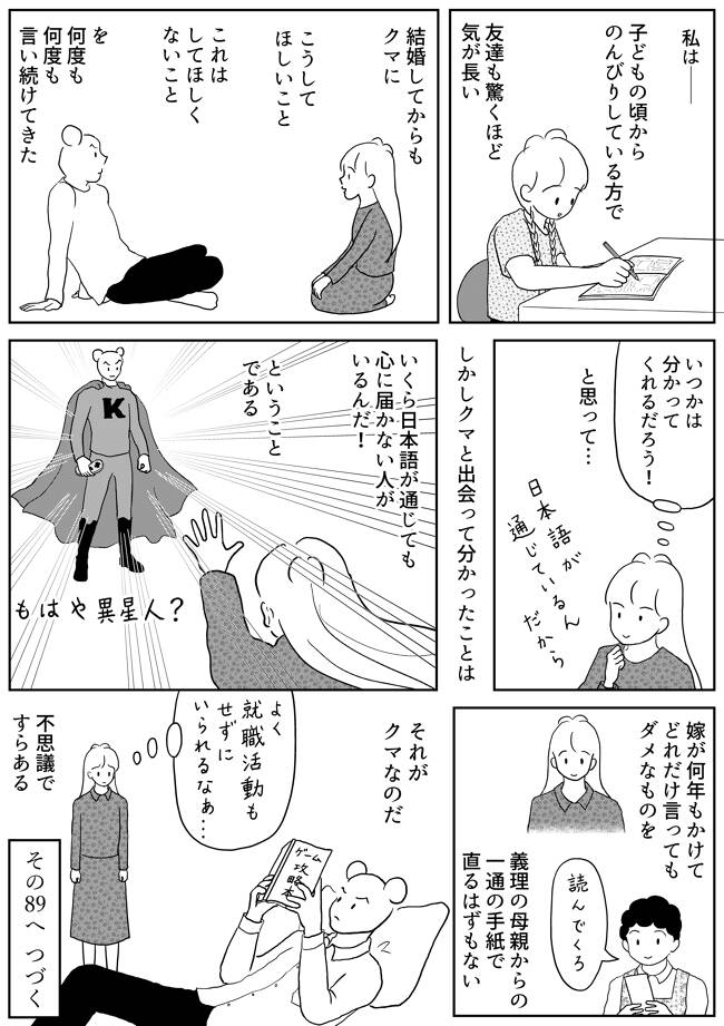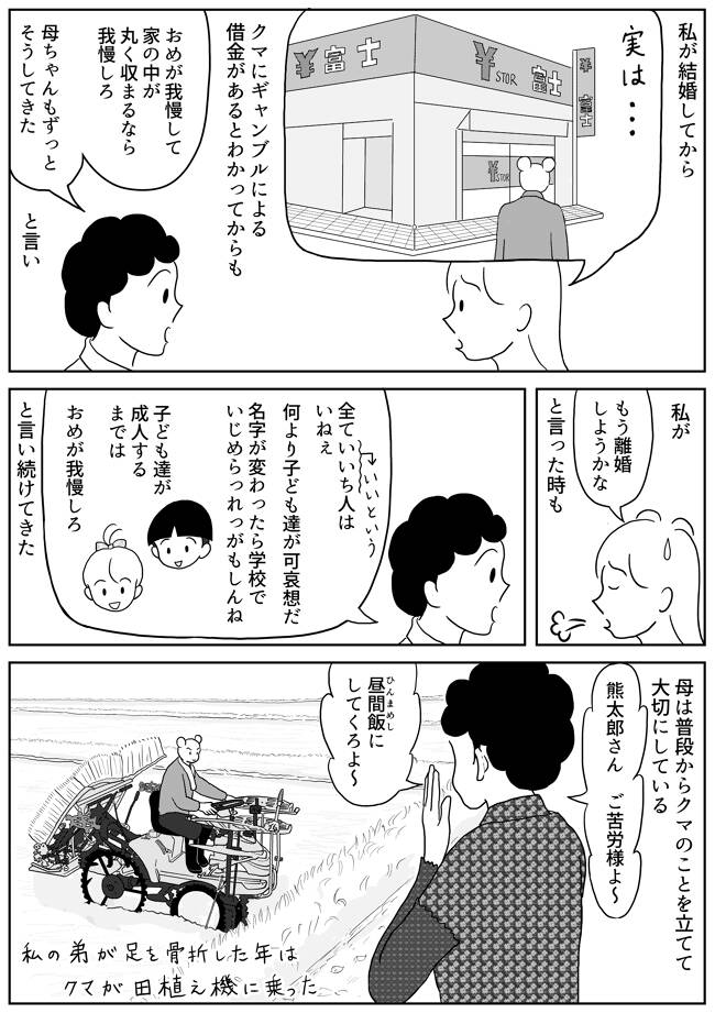 - 色々教えてくれる同僚男性、一方クマは家計...