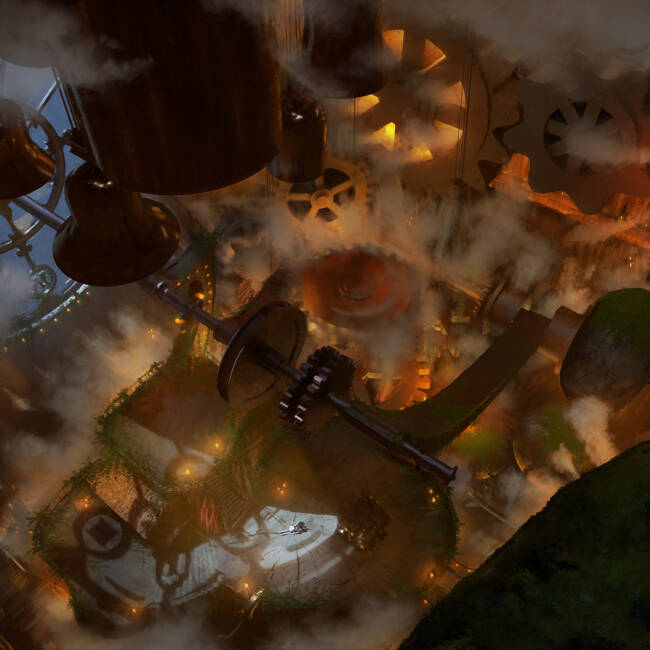時計台の歯ぐるまがいっせいにまわりだしました。