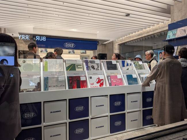 先日、銀座のジル・サンダー内に宇田川町にあったレコードショップ、CISCO(シスコ)が期間限定でオープンしたというので行ってきました。5月10日まで、広い店内の一角がレコードショップに! TシャツやキャップなどCISCOのおしゃれなグッズも売られていました。レゲエ、エレクトリック、ロック、ジャズ、といったジャンルの棚があり、「ジルサンダーセレクション」の棚もありました。数千枚のアナログレコードが並んでいるそうです。やはりジャケットがどれもおしゃれで部屋に飾りたくなります。