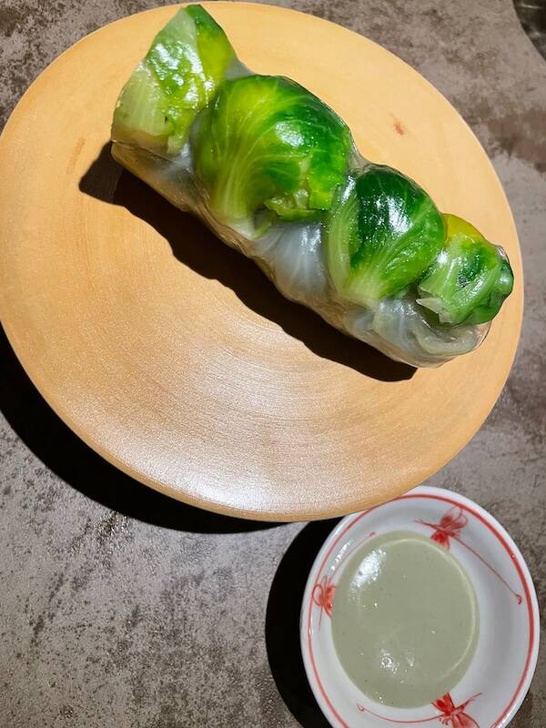 こちらもヤバかった。発酵キャベツと芽キャベツとハマグリの生春巻き。美味すぎます。野菜の美味しさが身に沁みる春です。