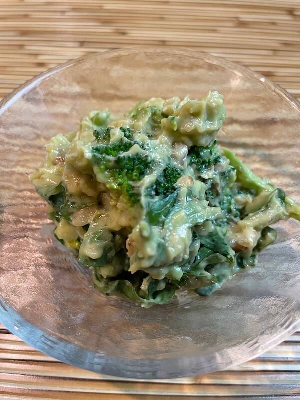 最近の食生活。野菜にハマってます。ブロッコリーとクレソン、アボカドくるみ和え。