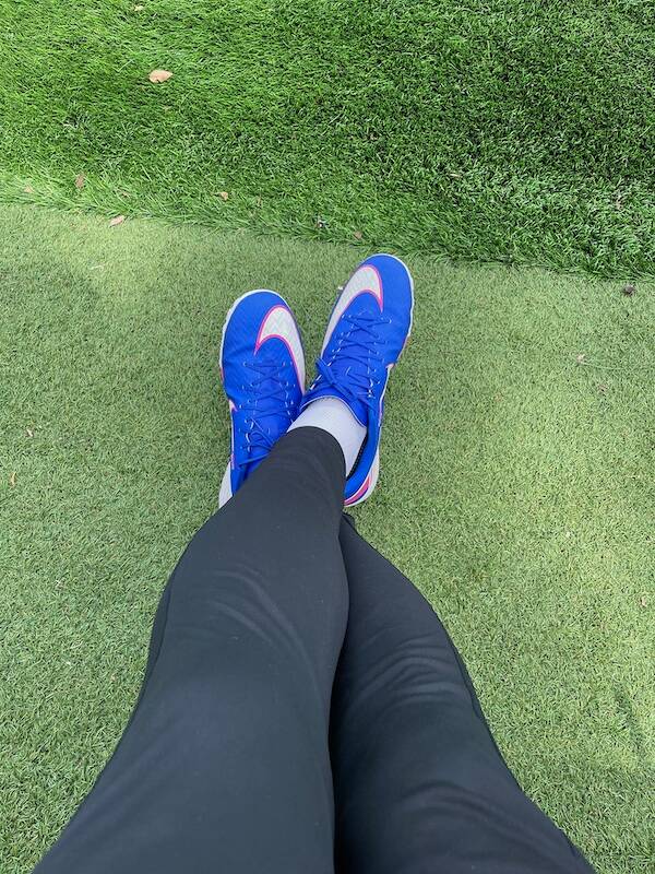 さて買い物。筑波も新シーズンを迎えたのでサッカーのトレーニングシューズも新バージョンに新調しました。青とピンクが綺麗。