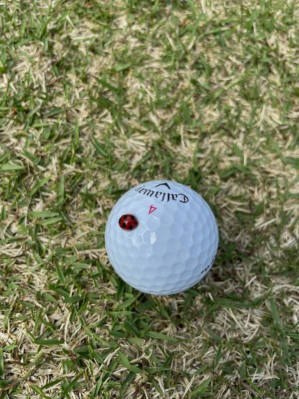 この日はゴルフボールにてんとう虫も止まって、なんか良いことありそうな予感(←んなわきゃーない笑)。