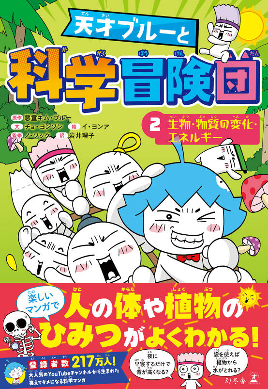 青髪の主人公・ブルーとお掃除道具の仲間たち、そして地球征服を企む宇宙人が、ハチャメチャな冒険をしながら楽しく科学を学びます。シリーズ2巻では、生物の機能や物質の変化、エネルギーの性質などが、面白い漫画を通して身に付きます。続きが気になるストーリー仕立てなので、勉強が苦手なお子様でも楽しく読むことができます。